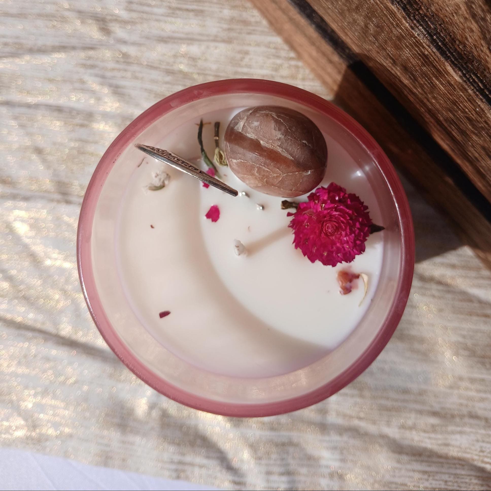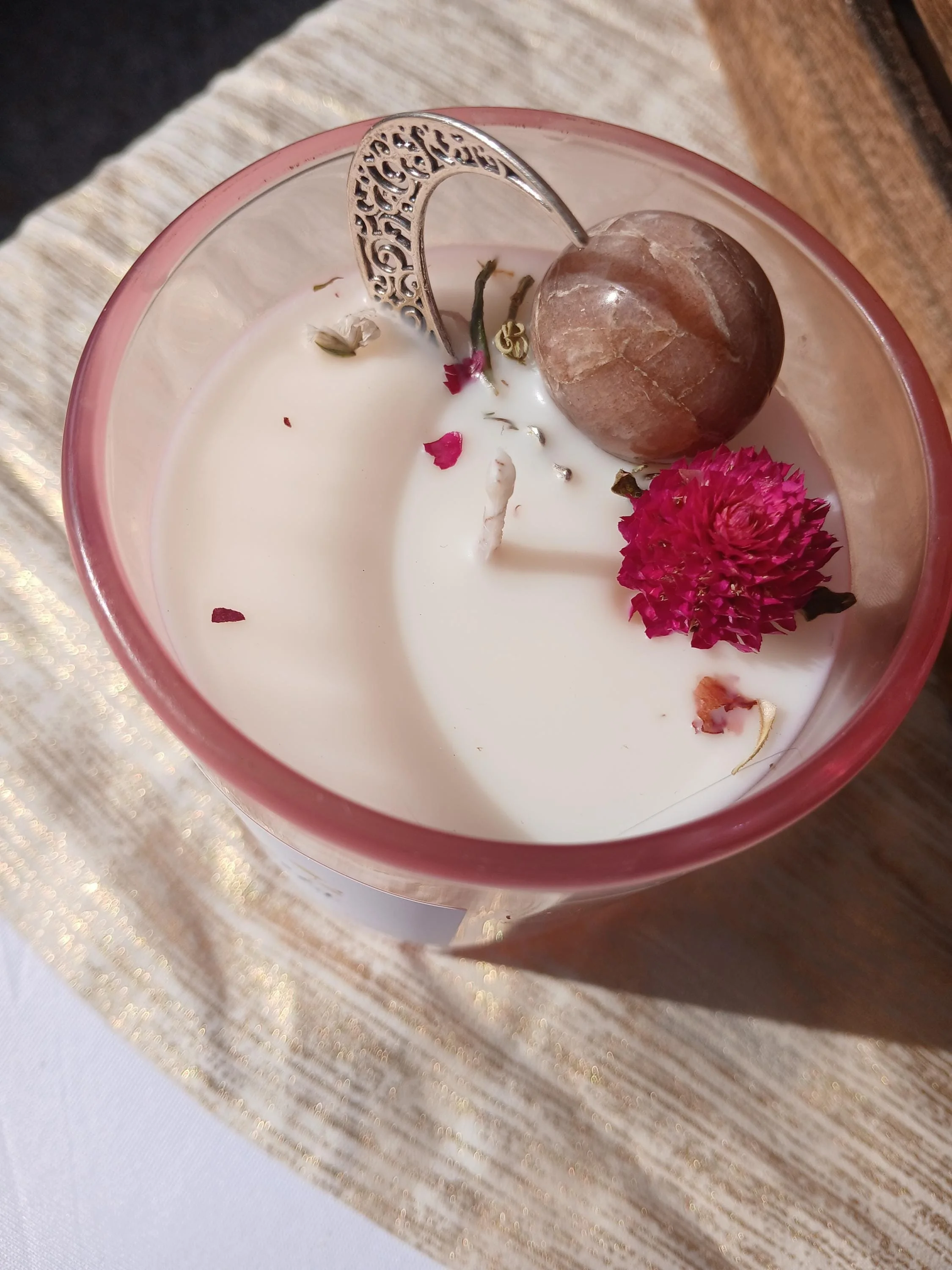 Each candle is carefully crafted to honor the divine feminine energy of the powerful goddess Venus, and is infused with crystals and delicate flowers to enhance love, passion, and beauty. Theyre perfect for creating a sacred space, cultivating self-love, or manifesting romantic energy.