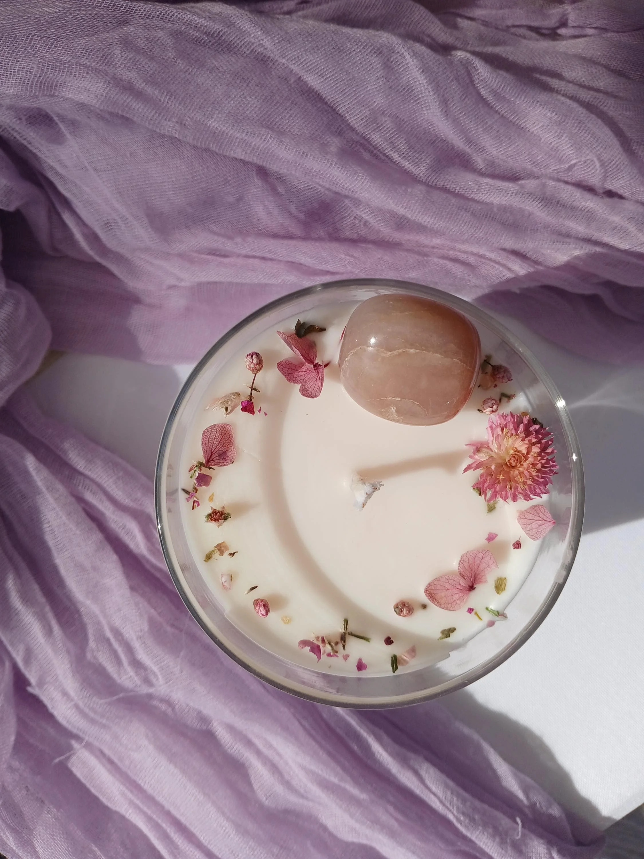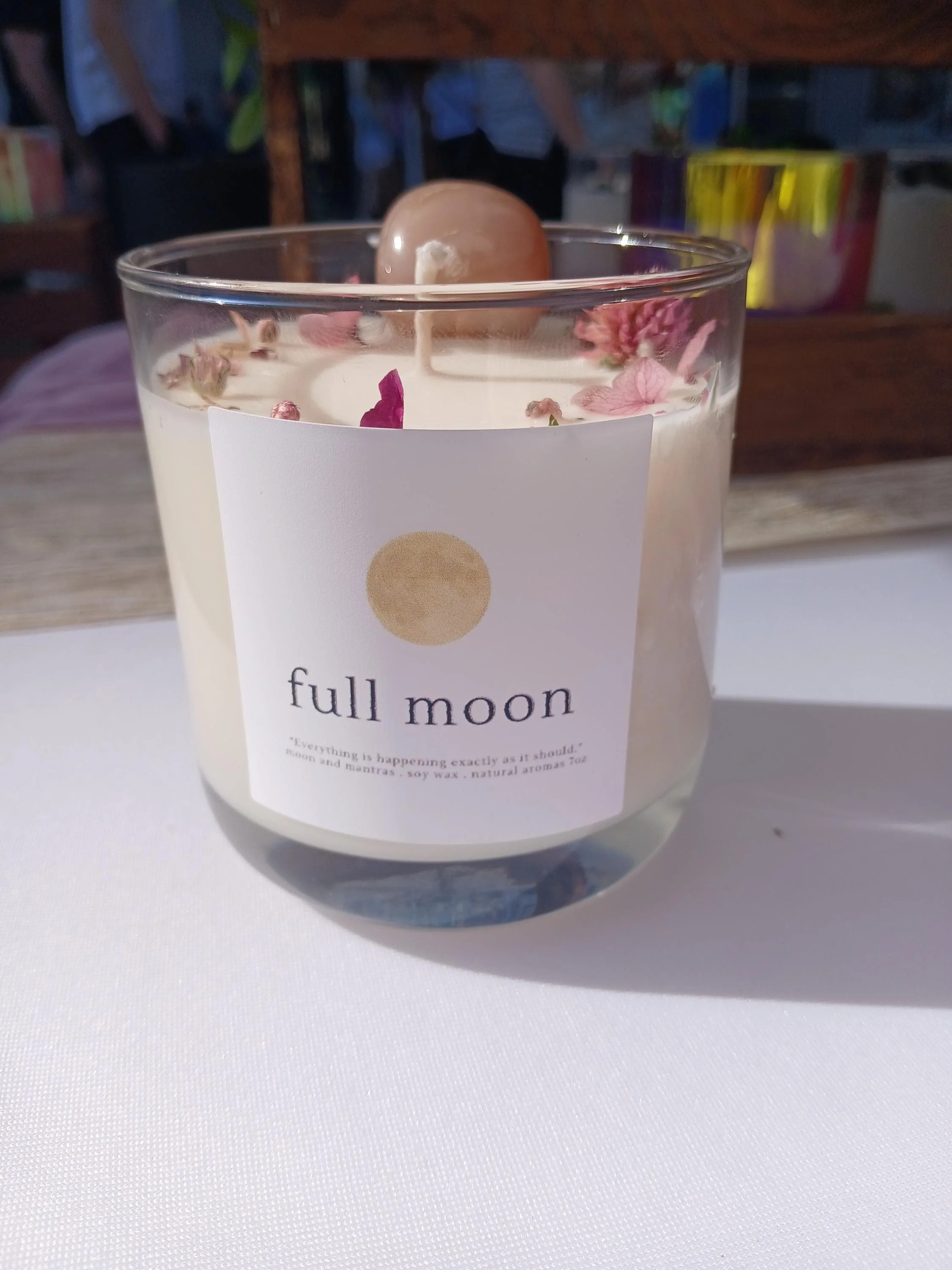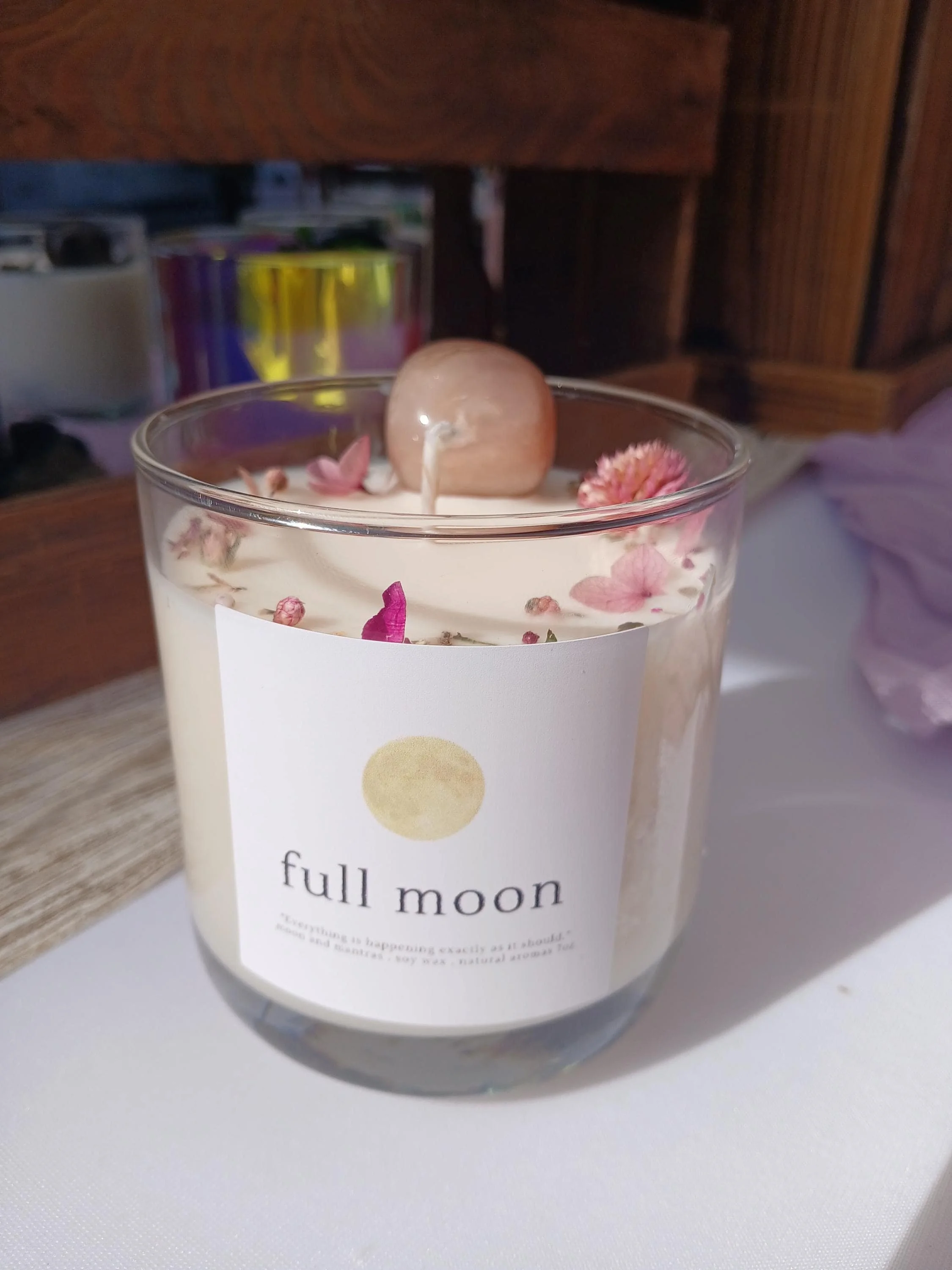Full moon intention candle - ritual soy wax candle with hidden crystals