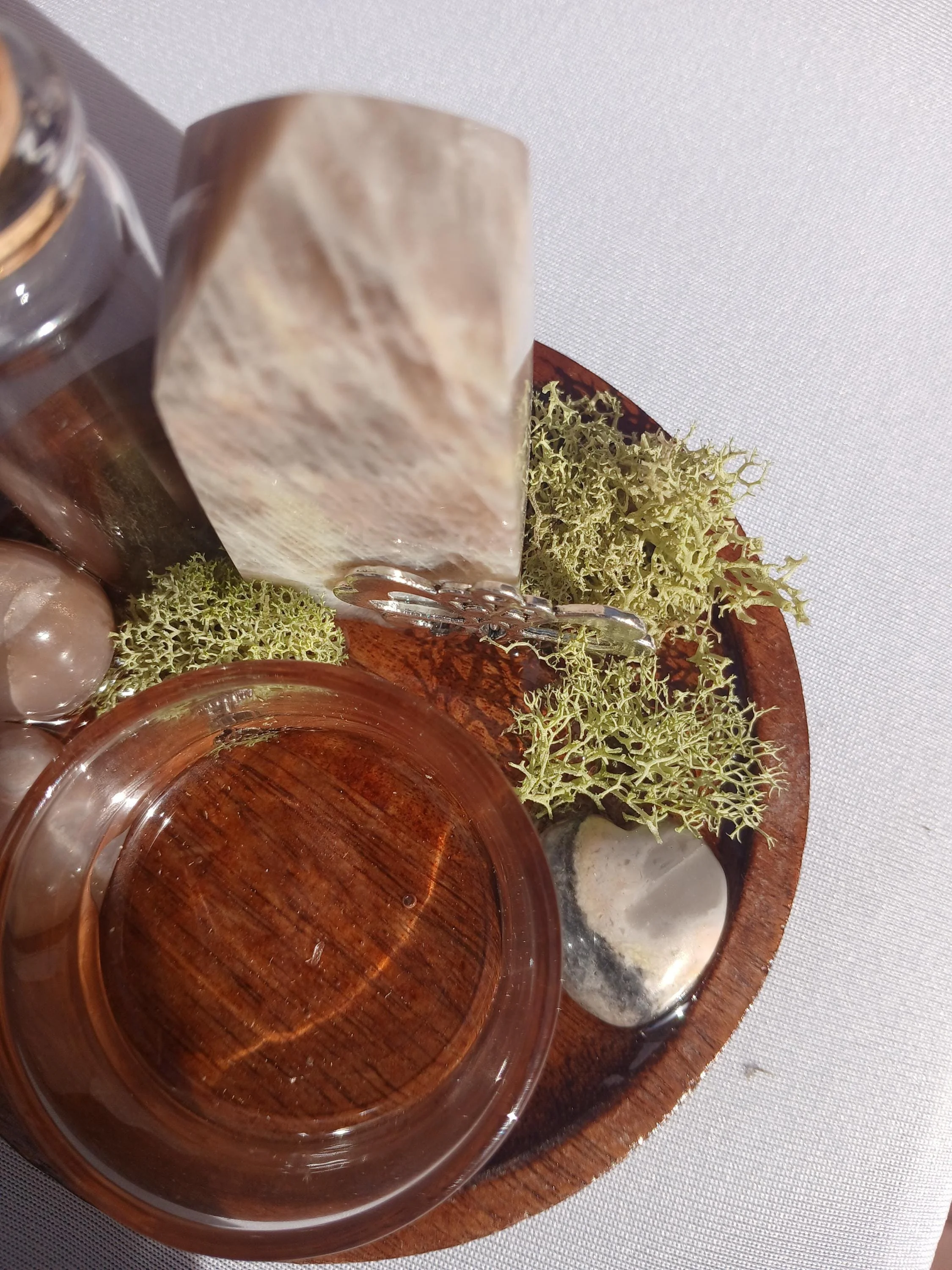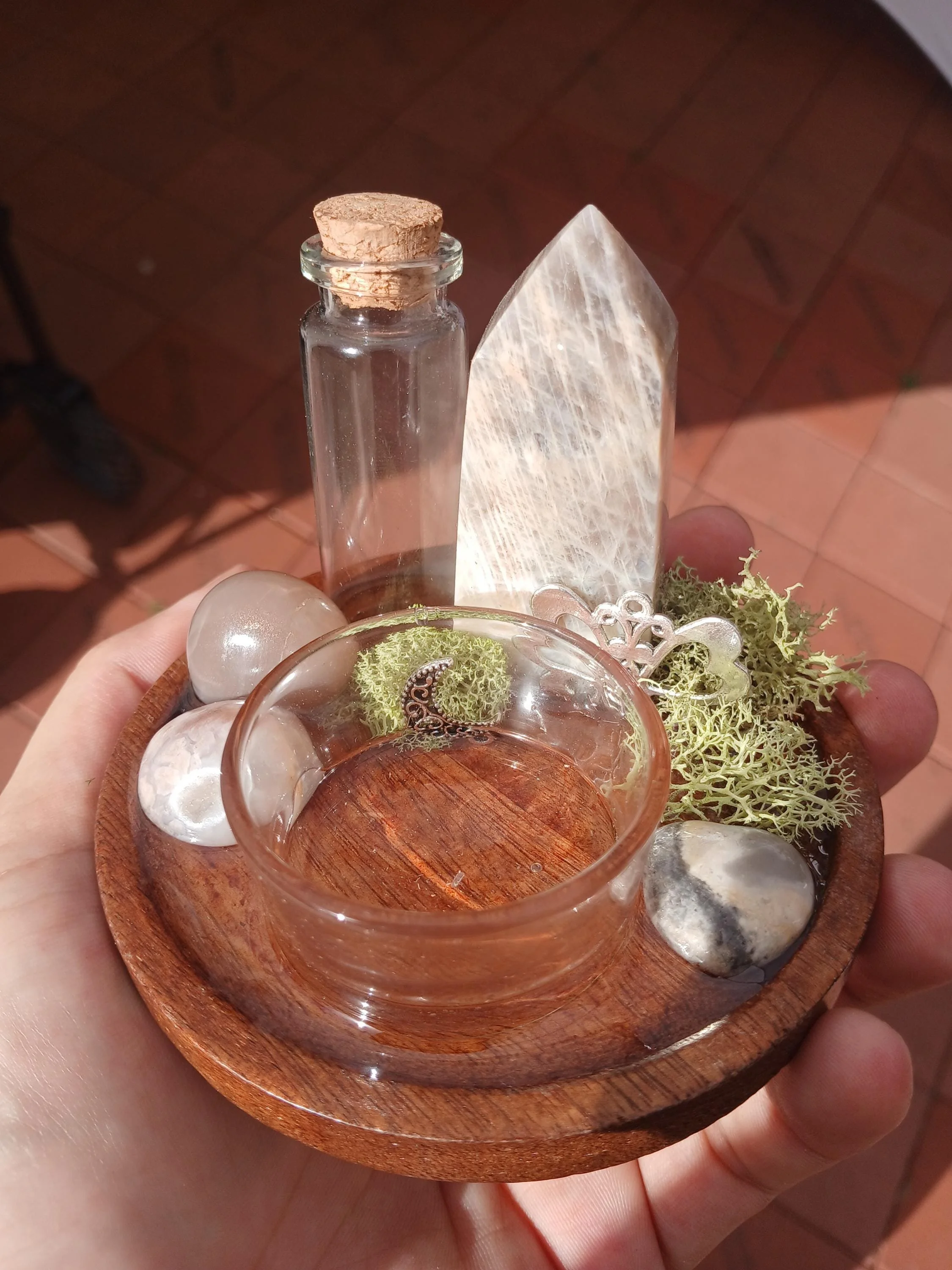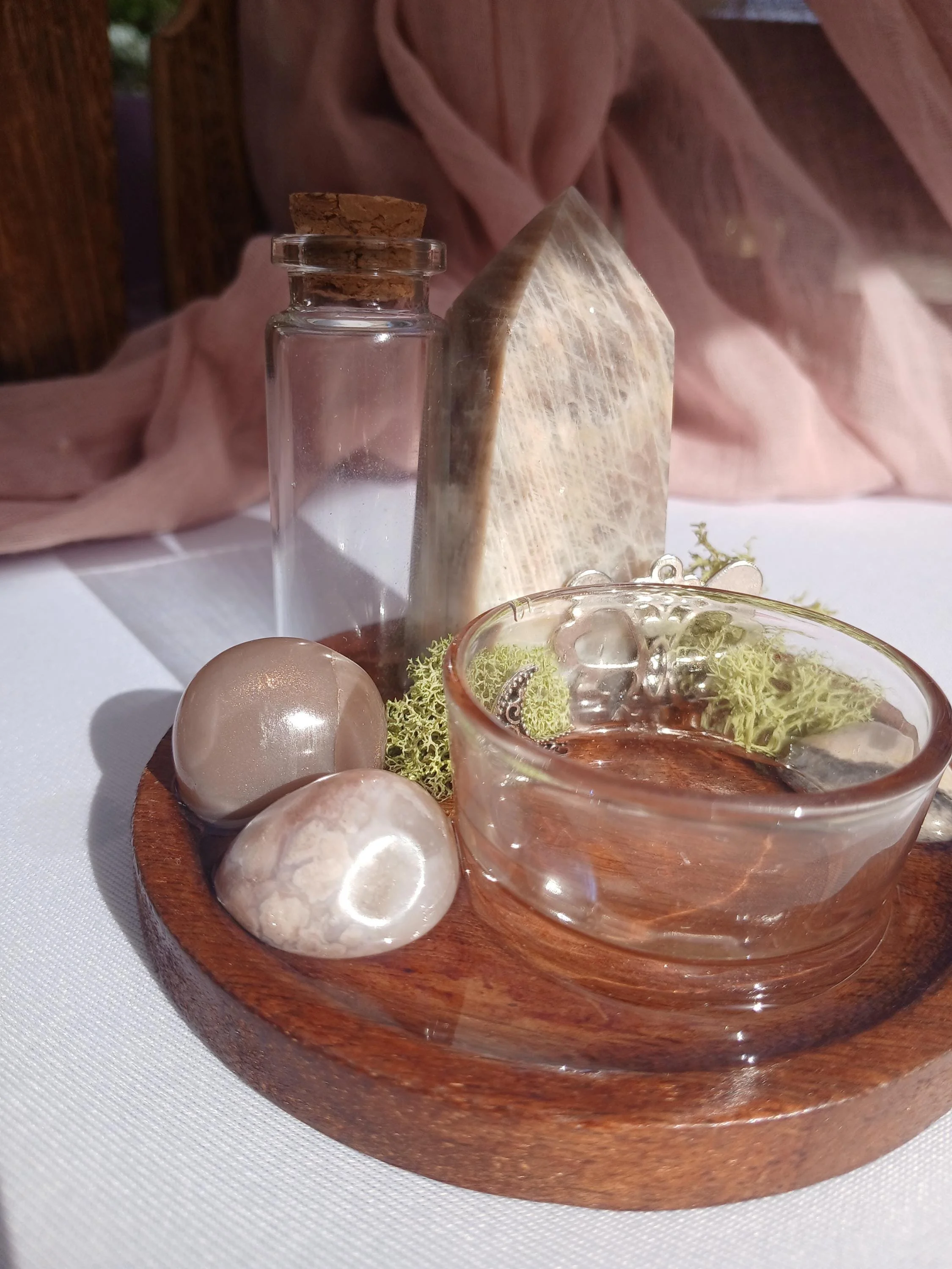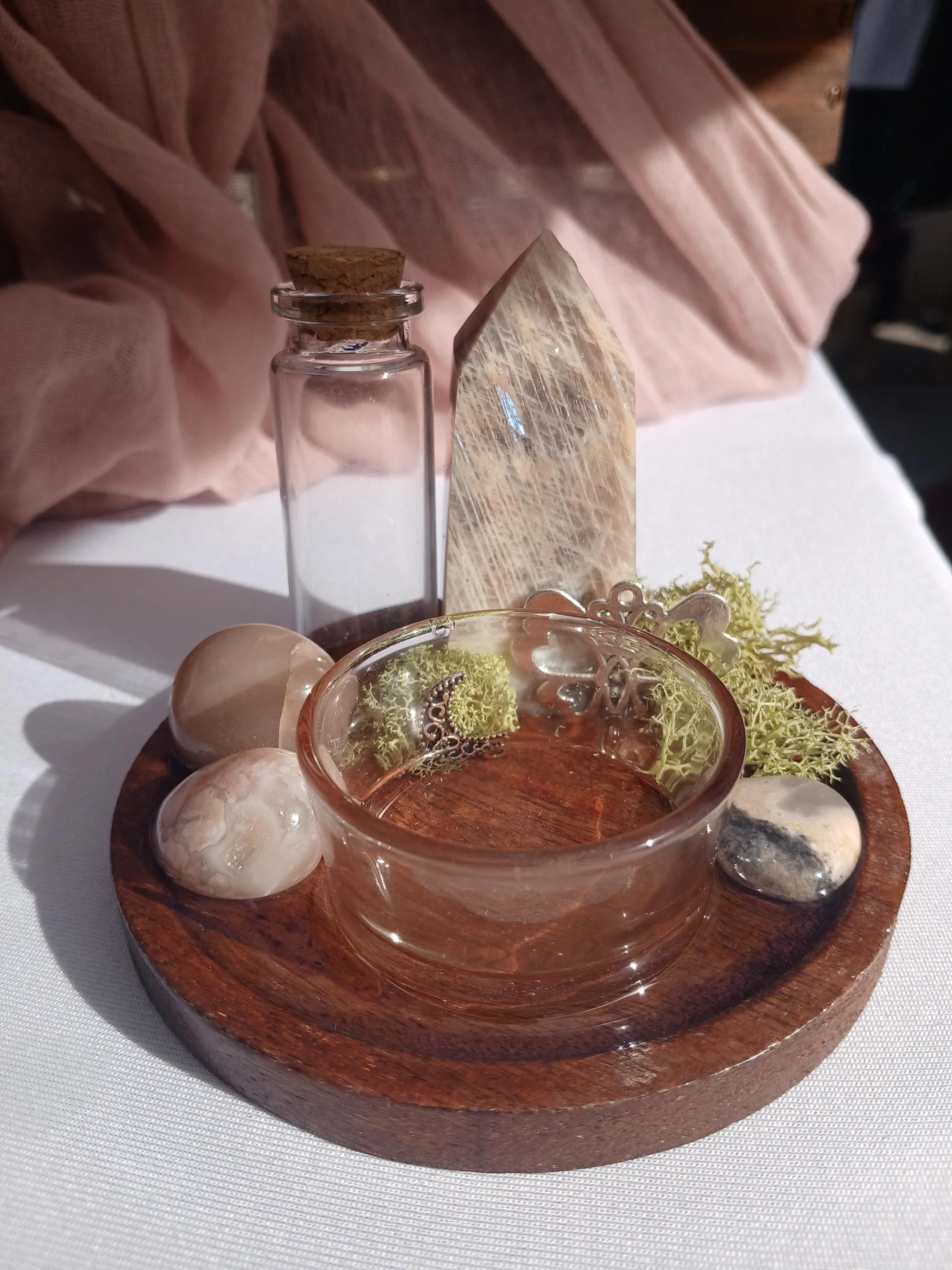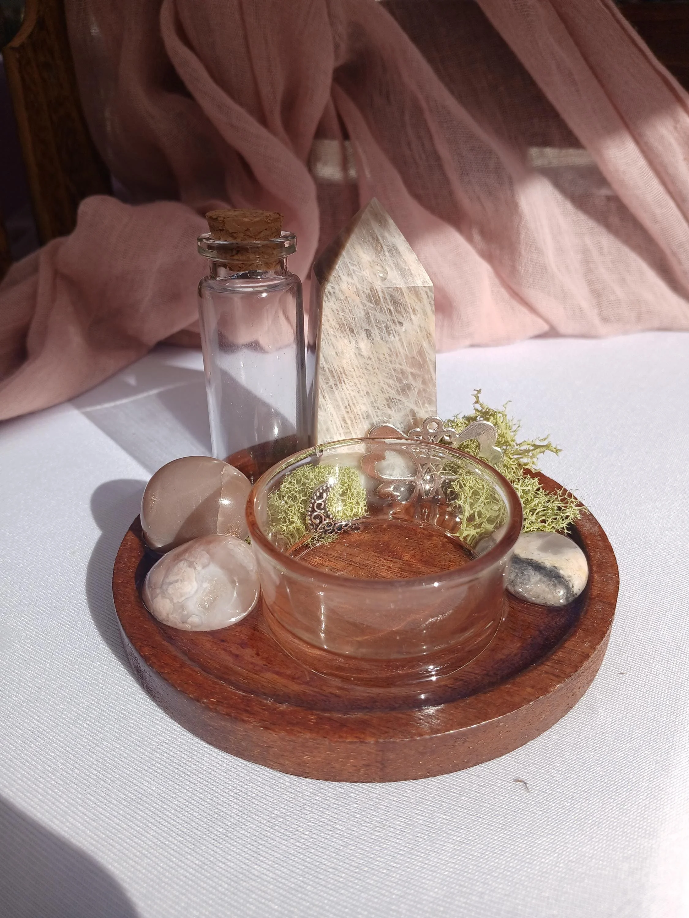 Make a Wish - intention crystal altar with spell holder, butterfly charm and moonstone tower