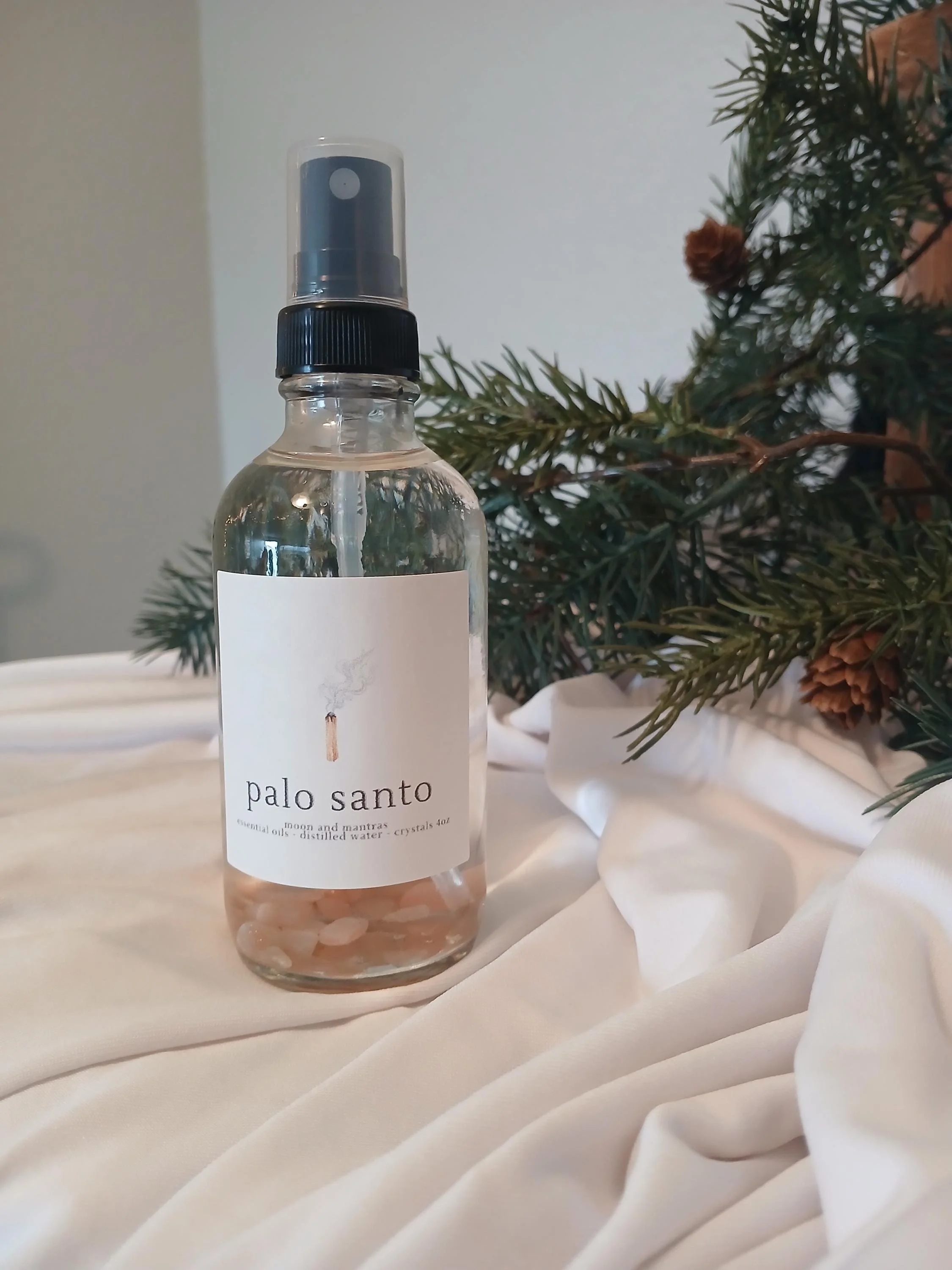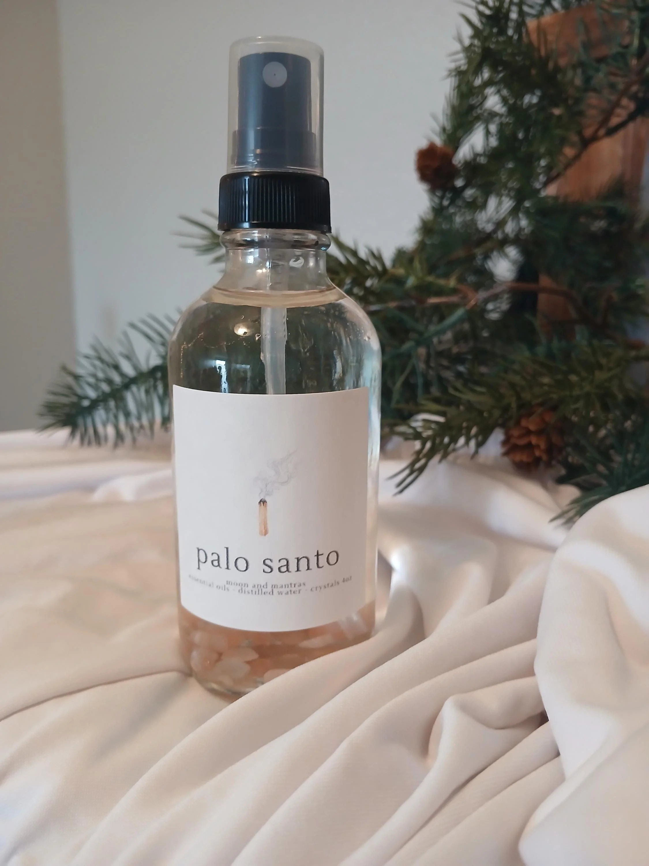 Image 1 of 5 Image 2 of 5 Image 3 of 5 Image 4 of 5 Image 5 of 5 Palo Santo Spray - room spray for cleansing and positive energy with moonstone $15.00 Our palo santo spray uses essential oil for natural aromatherapy benefits and is an excellent alternative to traditional smoke cleansing. Its skin safe depending on your natural sensitivities and is enhanced with moonstone for intuition, protection and compassionate energy. Add To Cart Added! Our palo santo spray uses essential oil for natural aromatherapy benefits and is an excellent alternative to traditional smoke cleansing. Its skin safe depending on your natural sensitivities and is enhanced with moonstone for intuition, protection and compassionate energy.