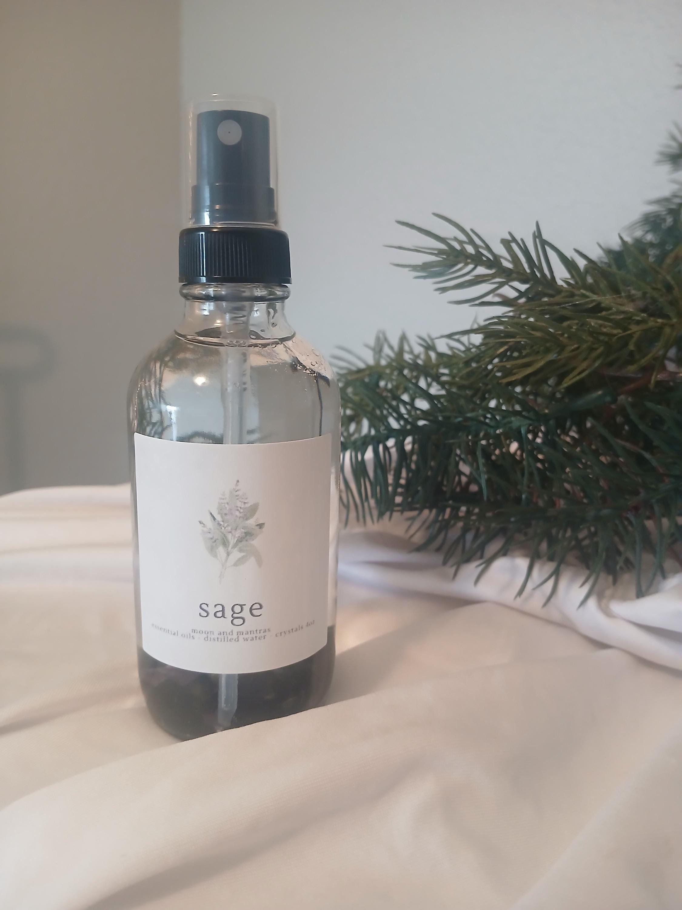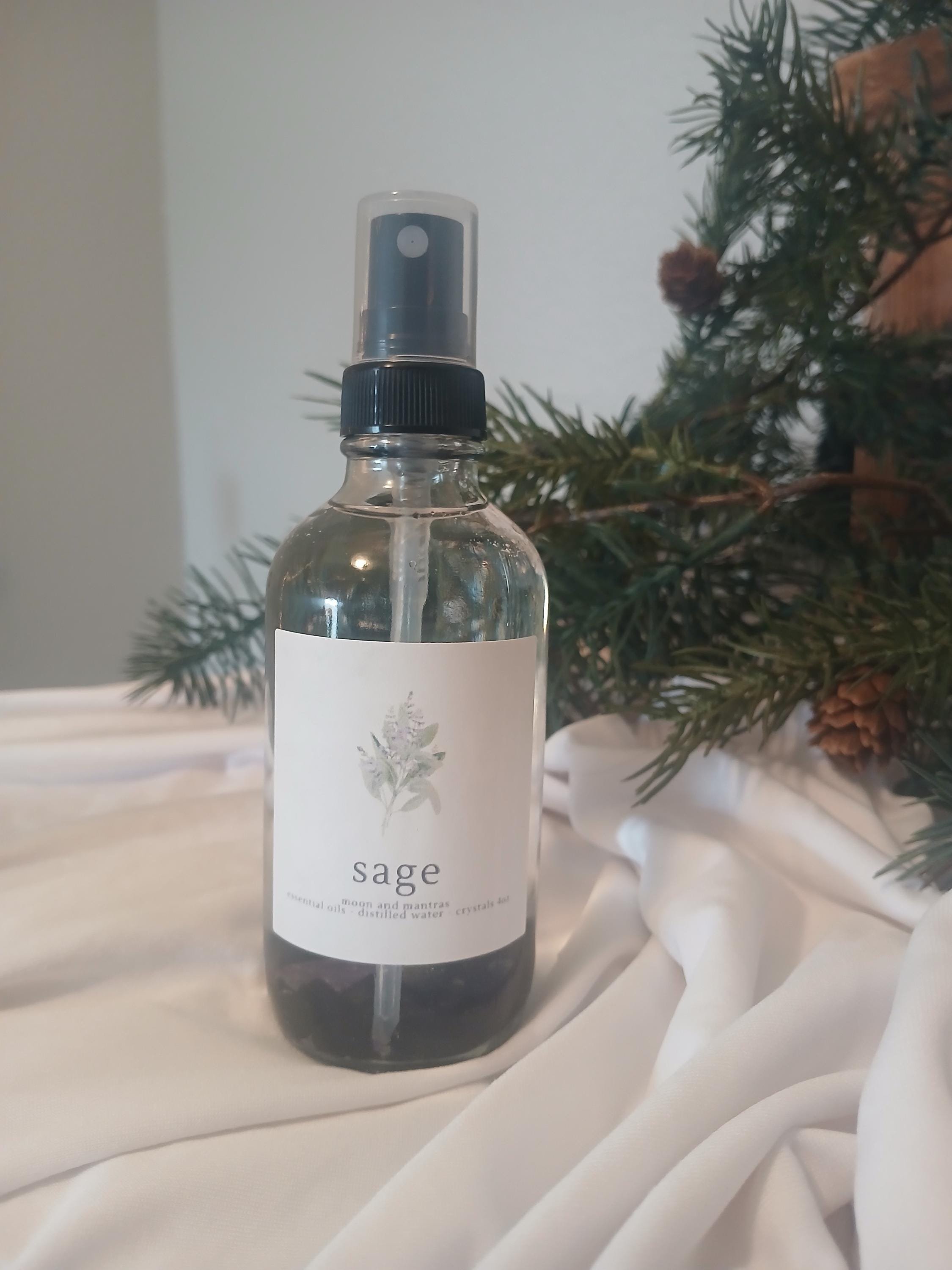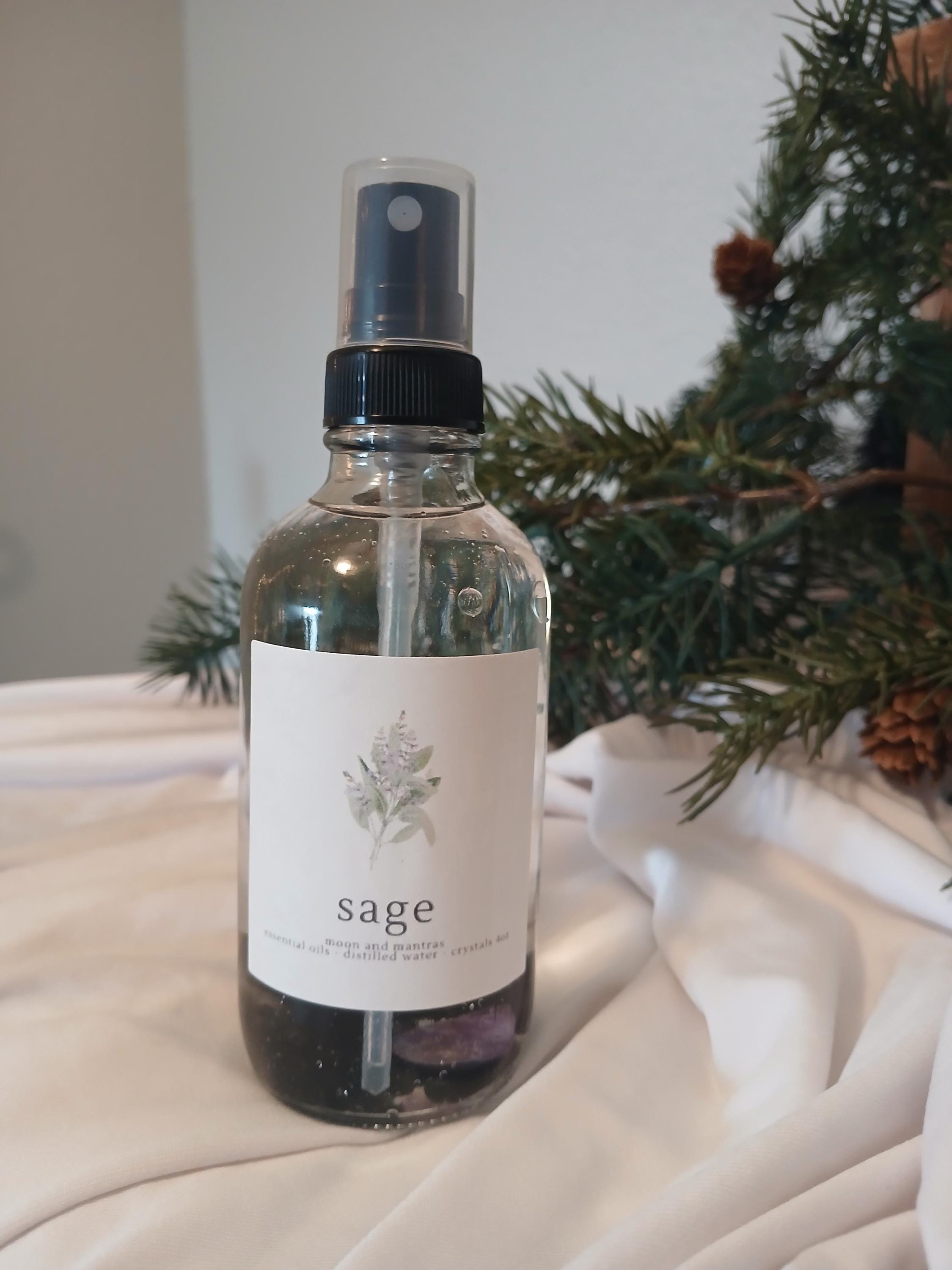 Our sage spray uses essential oil for natural aromatherapy benefits and is an excellent alternative to traditional smoke cleansing.