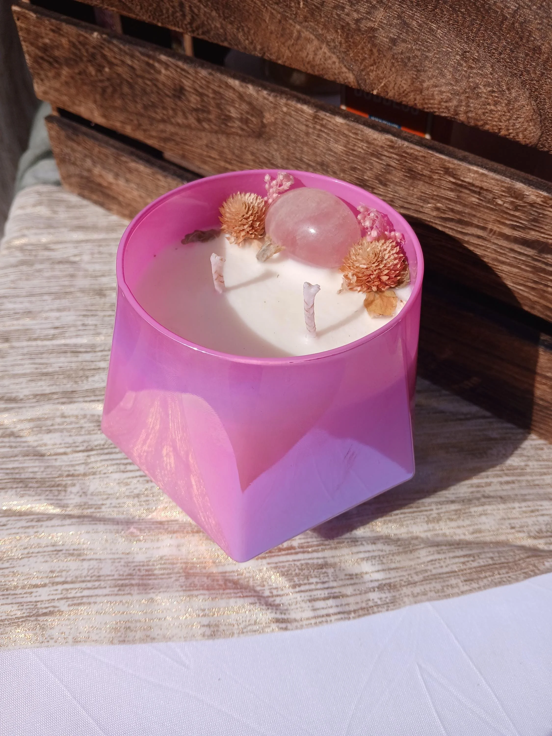Self-love intention candle with rose quartz and soy wax
